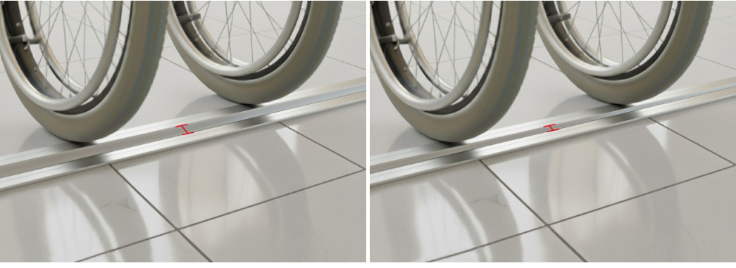 Left: Existing groove 23mm rail → Wheelchair jam occurred Right: groove 19.5mm BF rail → Maintain a perfect plane