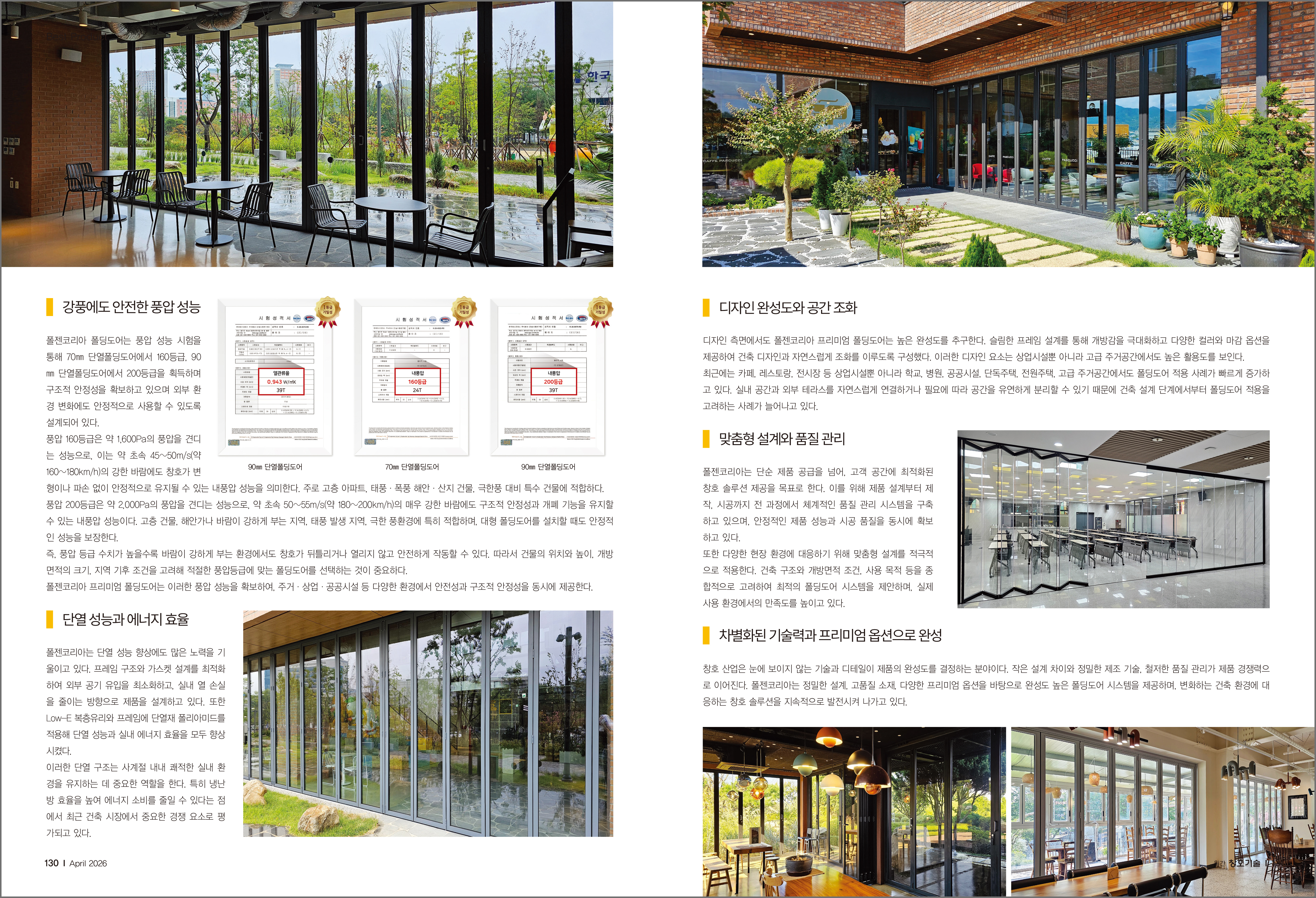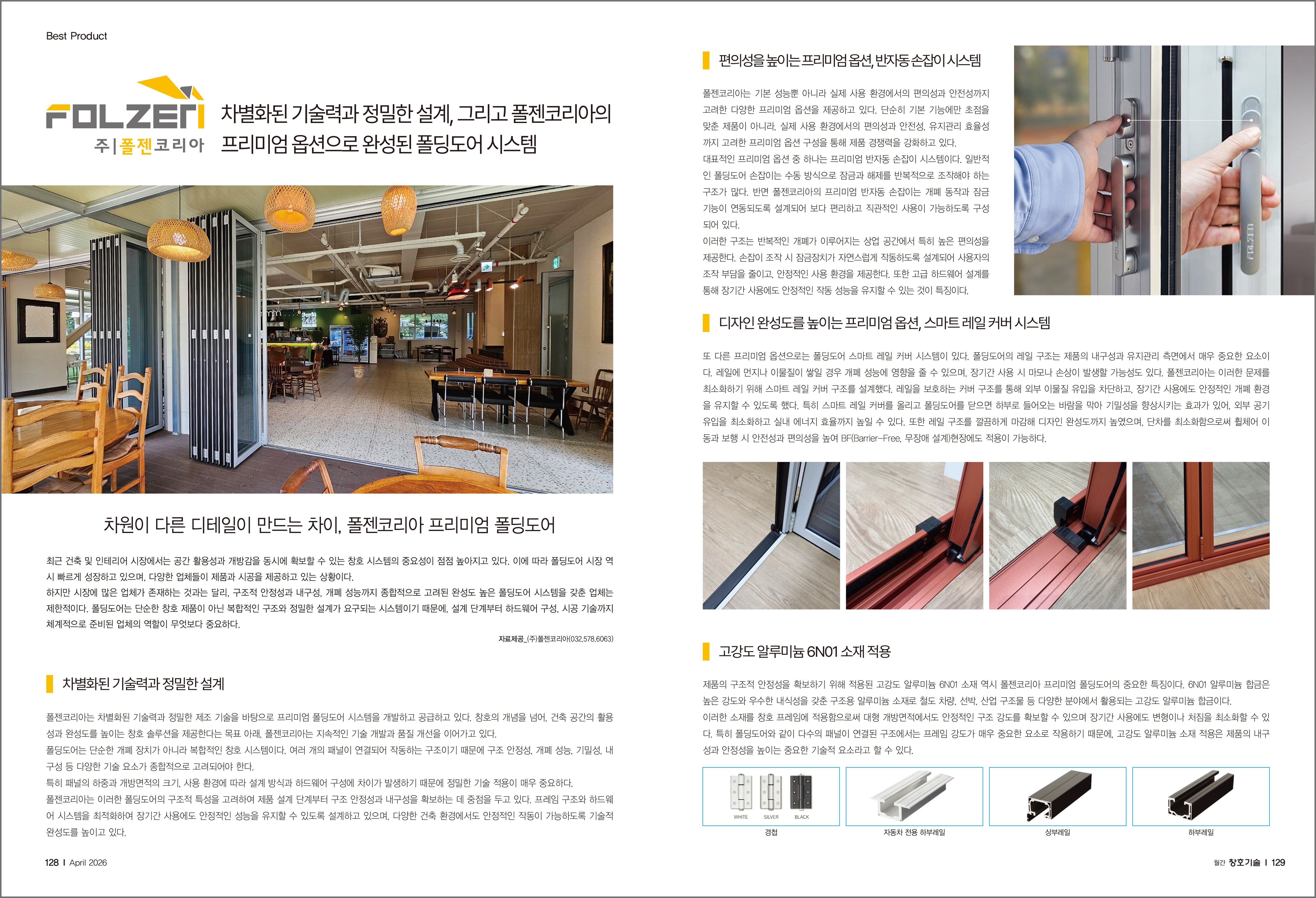 Folzen Korea's premium folding door system was introduced in the April issue of Changho Technology!