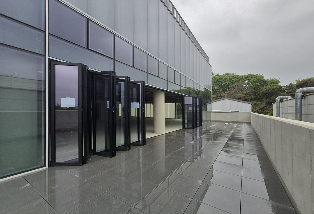 넓은 개방면적을 기반으로 폴딩도어를 적용하여 공간을 유연하게 개방할 수 있도록 하였으며, 필요 시에는 공간을 분리하여 매장 운영 및 내부 동선 관리가 효율적으로 이루어질 수 있도록 구성했습니다.
