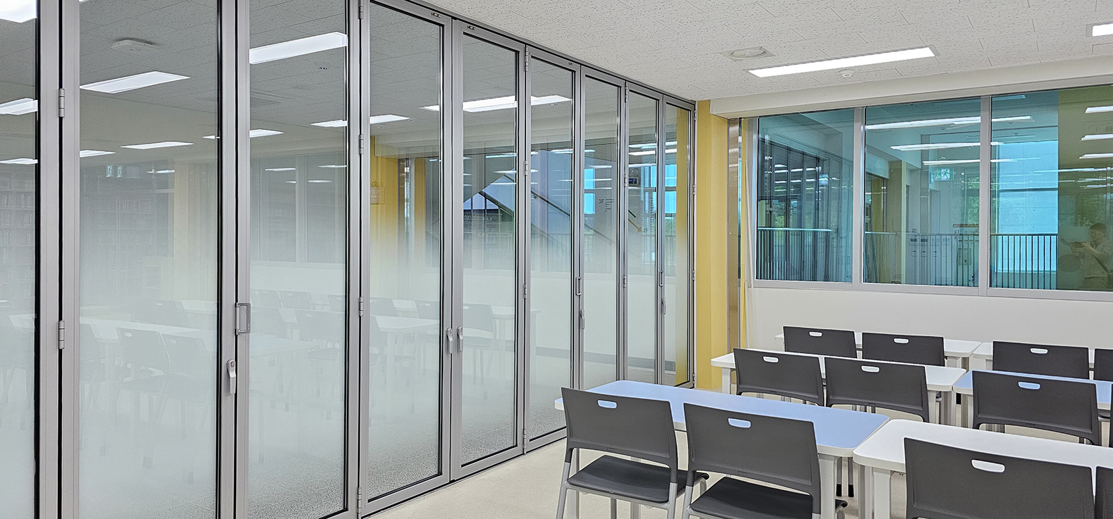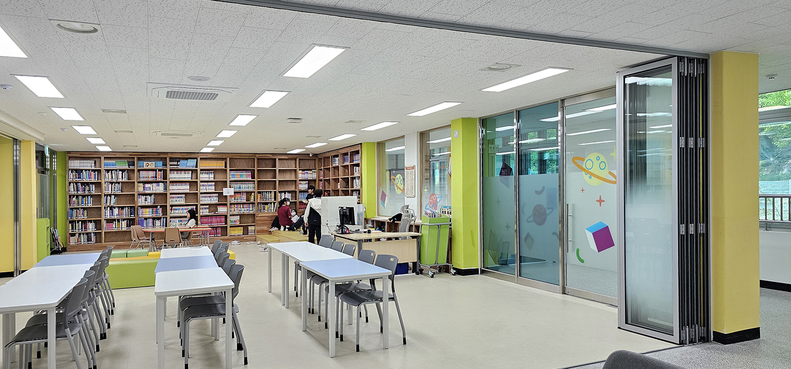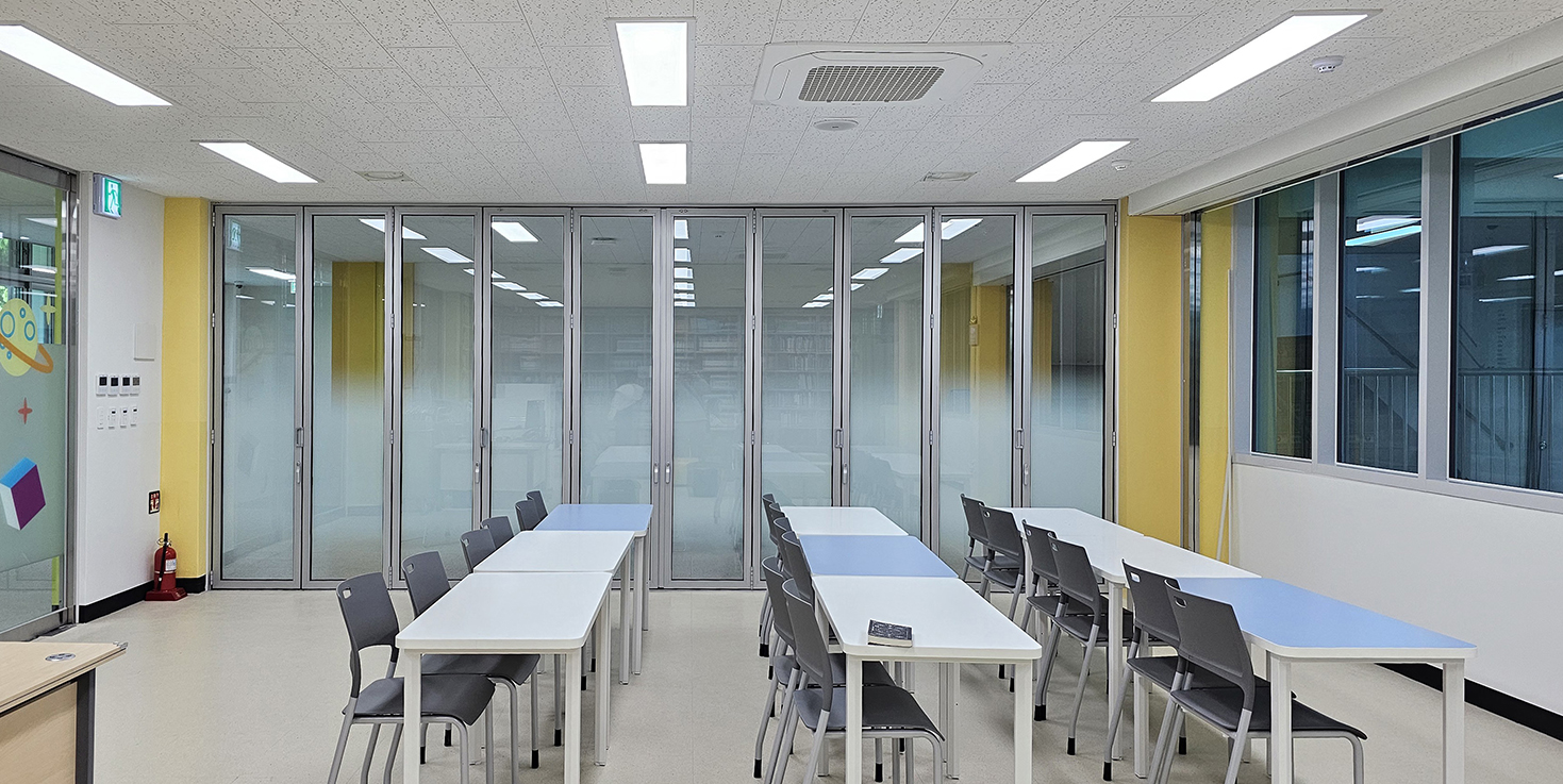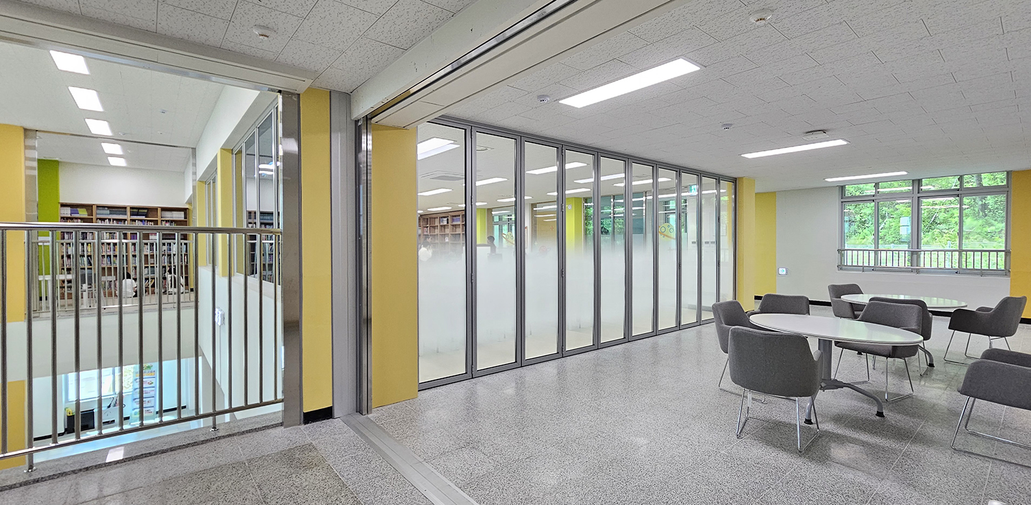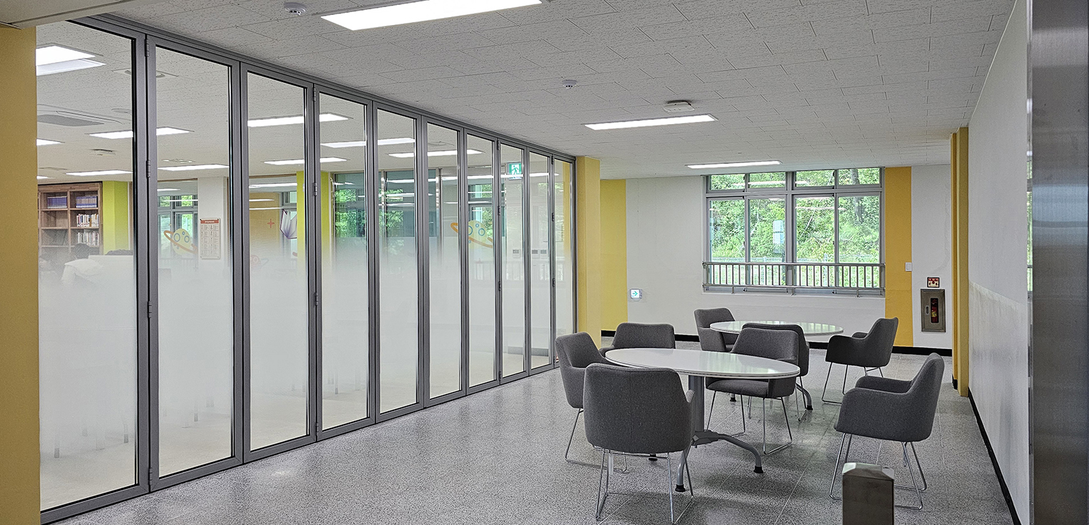 천안 직산초등학교 도서관에 폴젠코리아 폴딩도어를 시공했습니다.