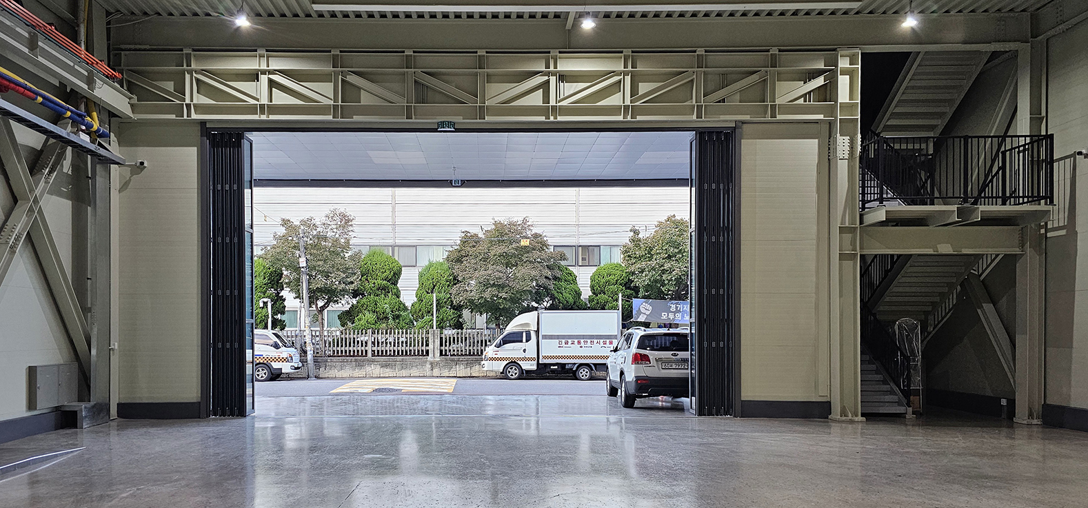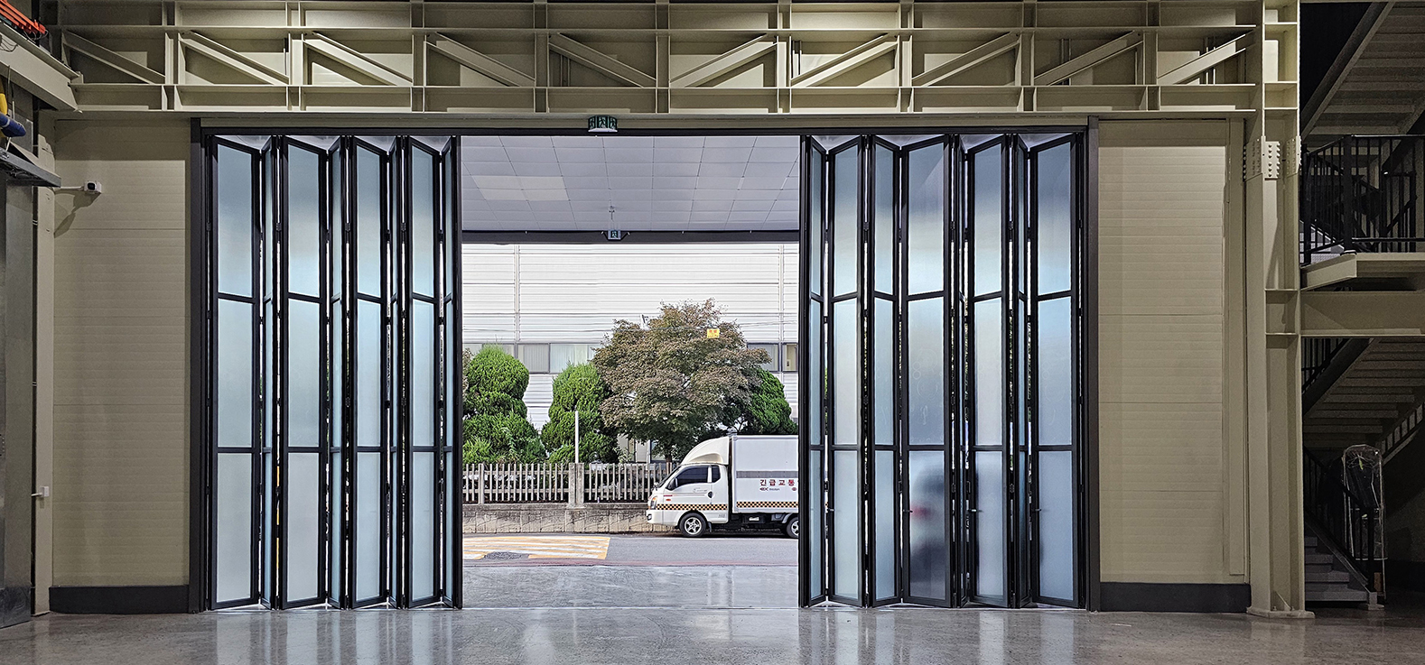 폴딩도어를 설치함으로써 공장은 공간 활용 효율을 극대화하고, 작업 구역을 유연하게 구분할 수 있으며, 사계절 내내 쾌적한 실내 환경을 유지할 수 있습니다.