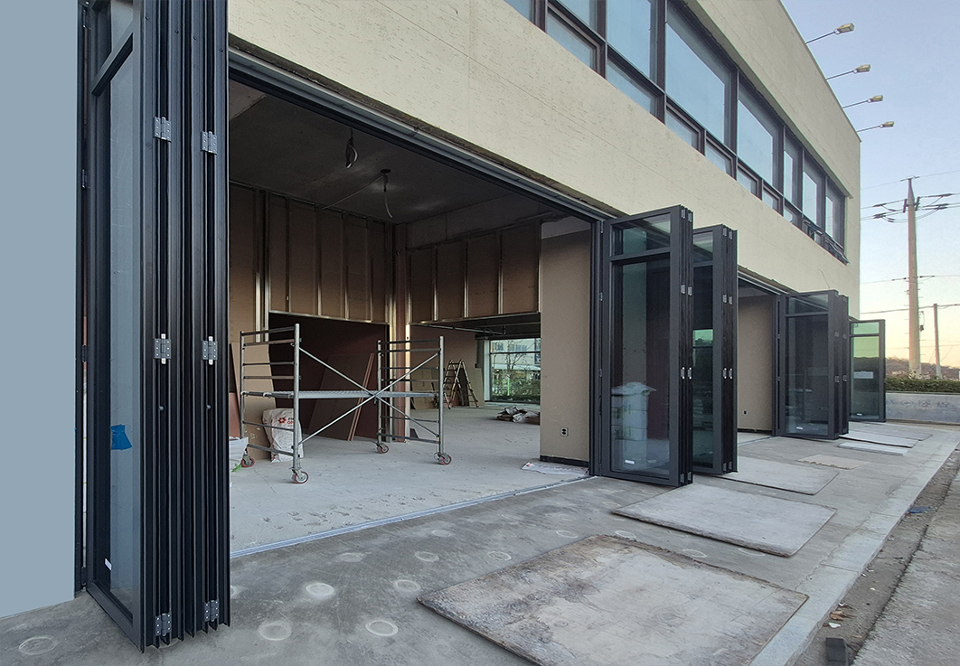 성남 시흥에 위치한 신축 카센터에 폴젠코리아 폴딩도어 설치를 진행하였습니다.