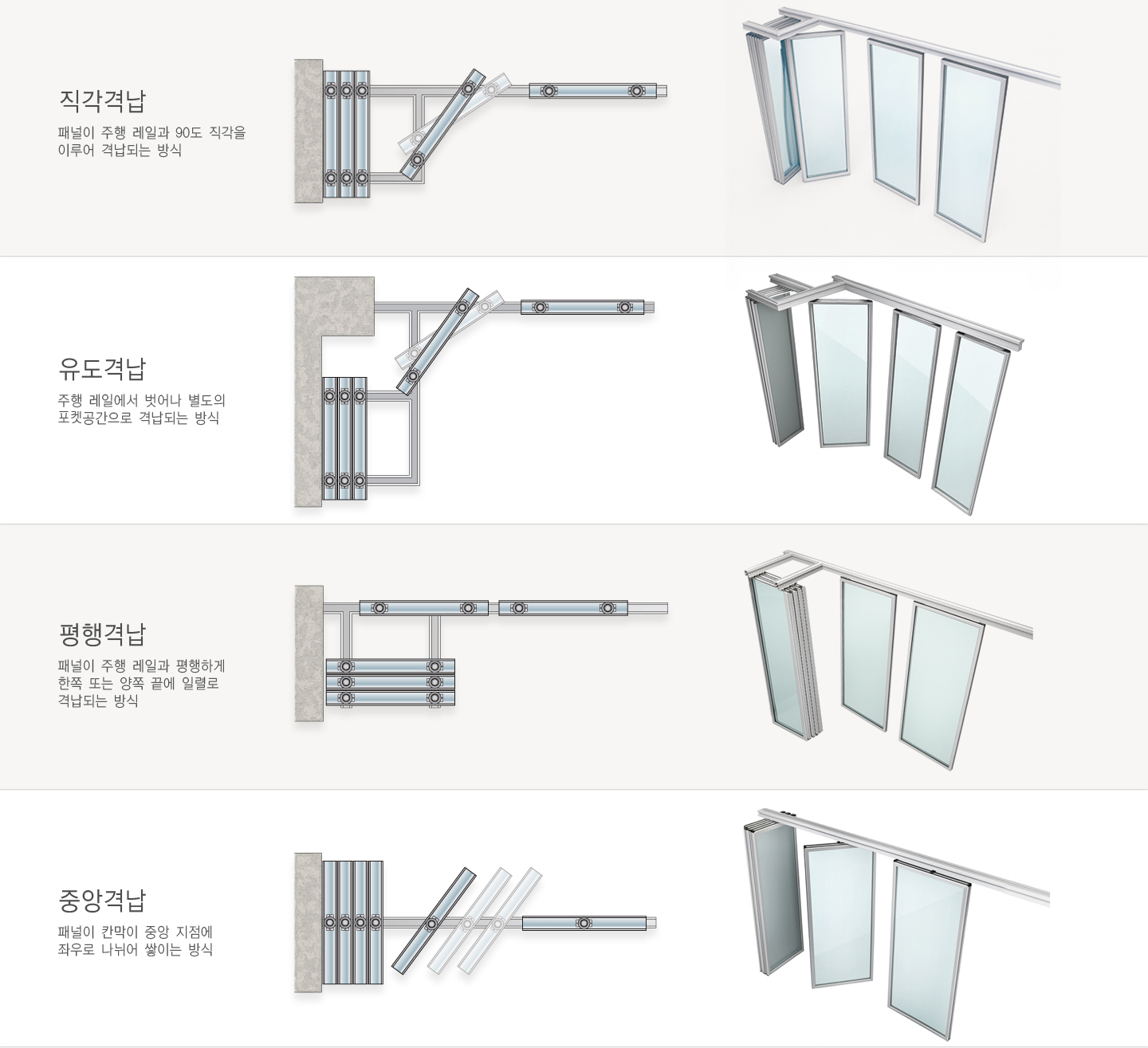 유리종류 | 강화유리, 투명유리, 복층유리, 3중유리, 합판 등 | 잠금방법 | 하부H바 반자동 스토퍼 |