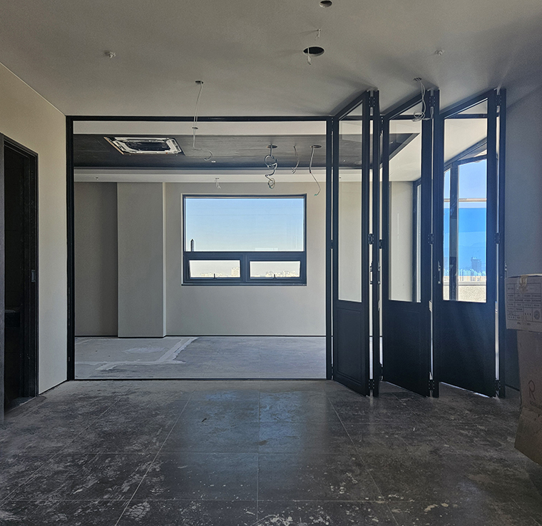 이번 시공은 공간의 개방감과 활용도를 높이기 위해 적용되었으며, 필요에 따라 공간을 유연하게 분리하고 확장할 수 있도록 설계되었습니다.
