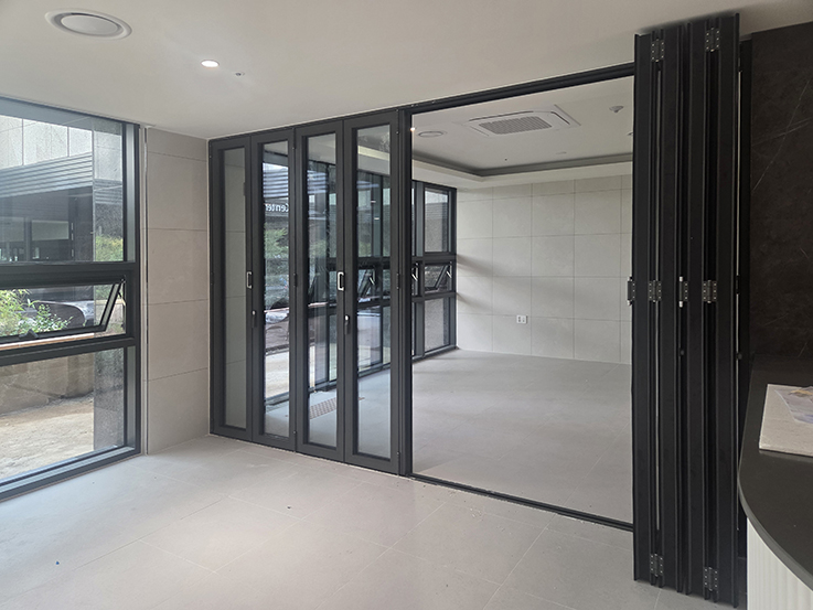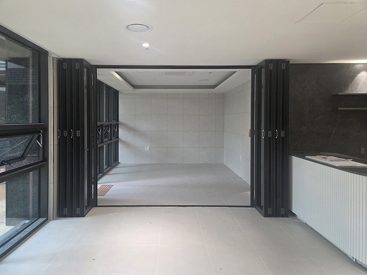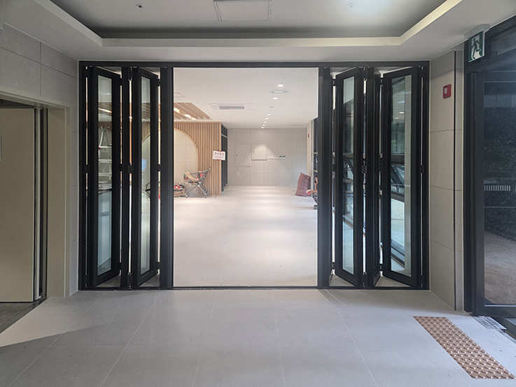 폴젠코리아 90㎜ 단열 폴딩도어는 우수한 단열 성능과 외풍·소음 차단, 견고한 프레임과 모던 디자인으로 커뮤니티 공간의 쾌적함과 효율성을 동시에 높였습니다.