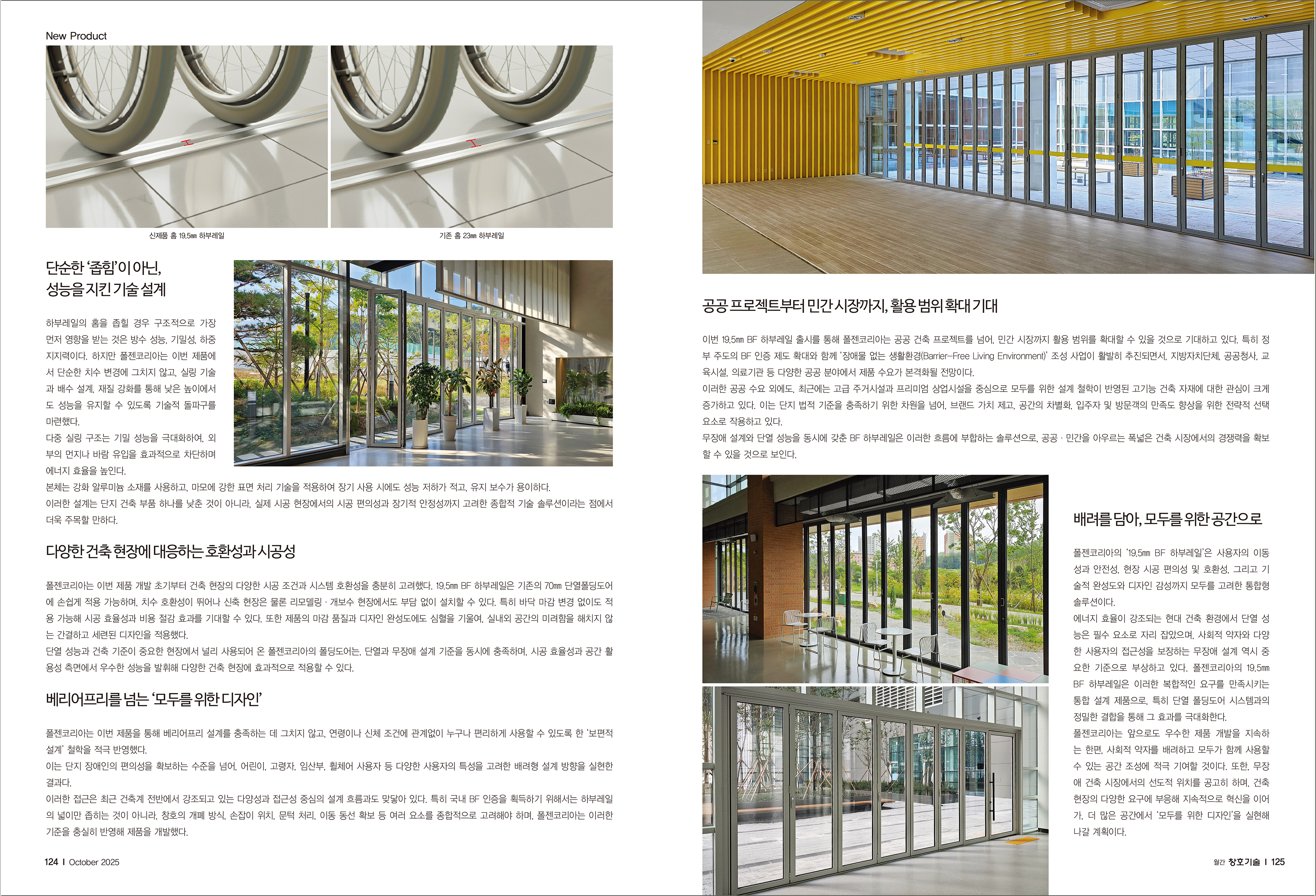국내 대표 창호 전문 매거진 『창호기술 10월호』에 폴젠코리아 BF하부레일 기사가 소개되었습니다.