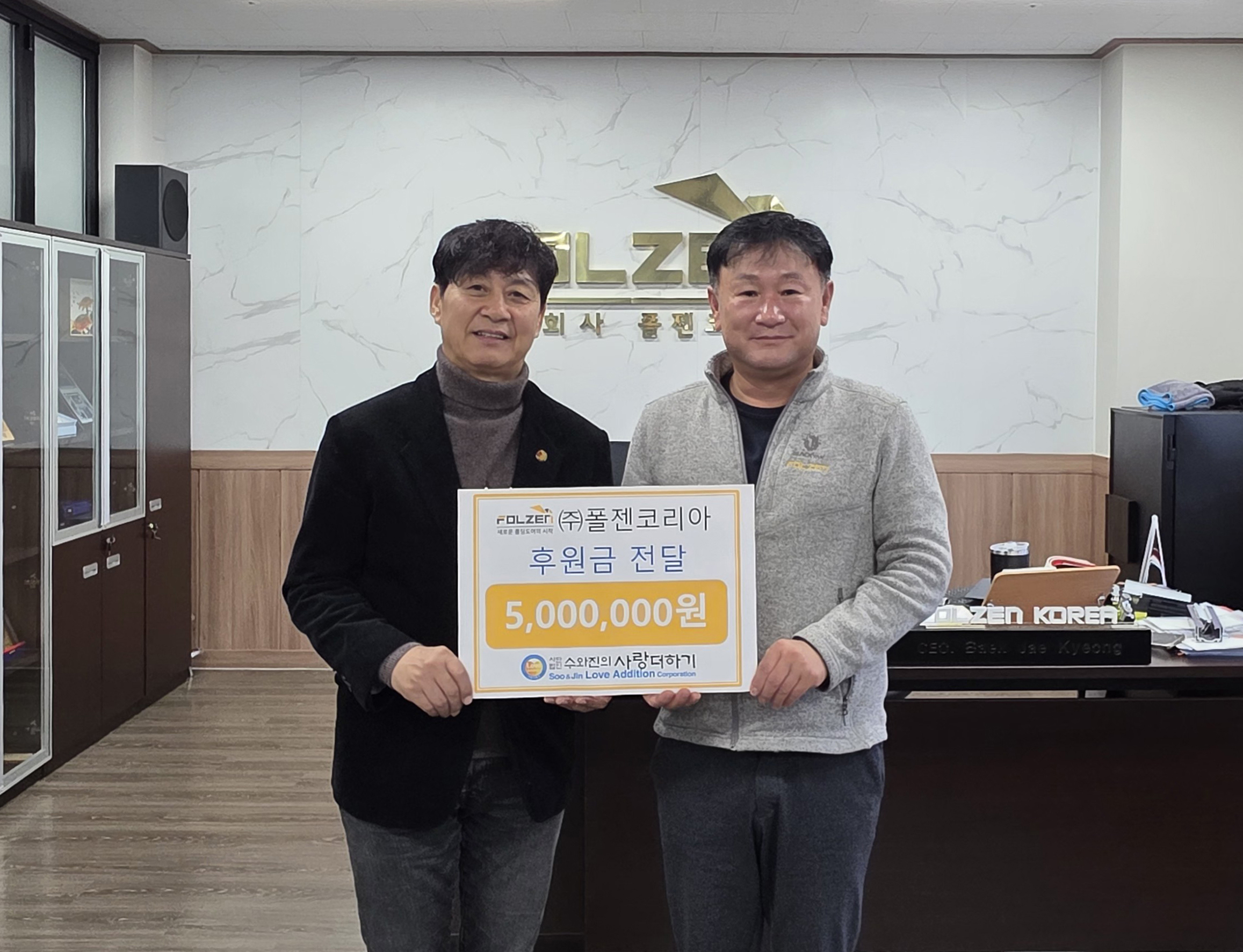 (주)폴젠코리아, 2025년에도 이웃 사랑 실천… 수와진 사랑더하기에 5,000,000원 기부!